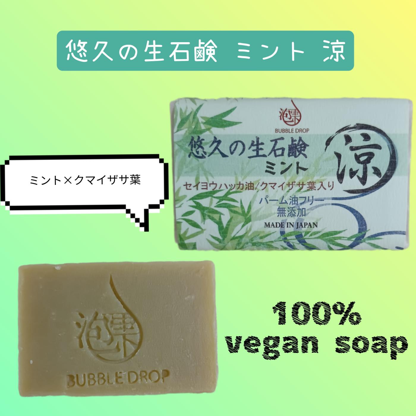 #bubbledropsoap #悠久の生石鹸 #無添加コールドプロセス製法 #ミント #セサミオイル #ココナッツオイル #米ぬか油 #ヒマシ油 #シアバター #カカオバター
