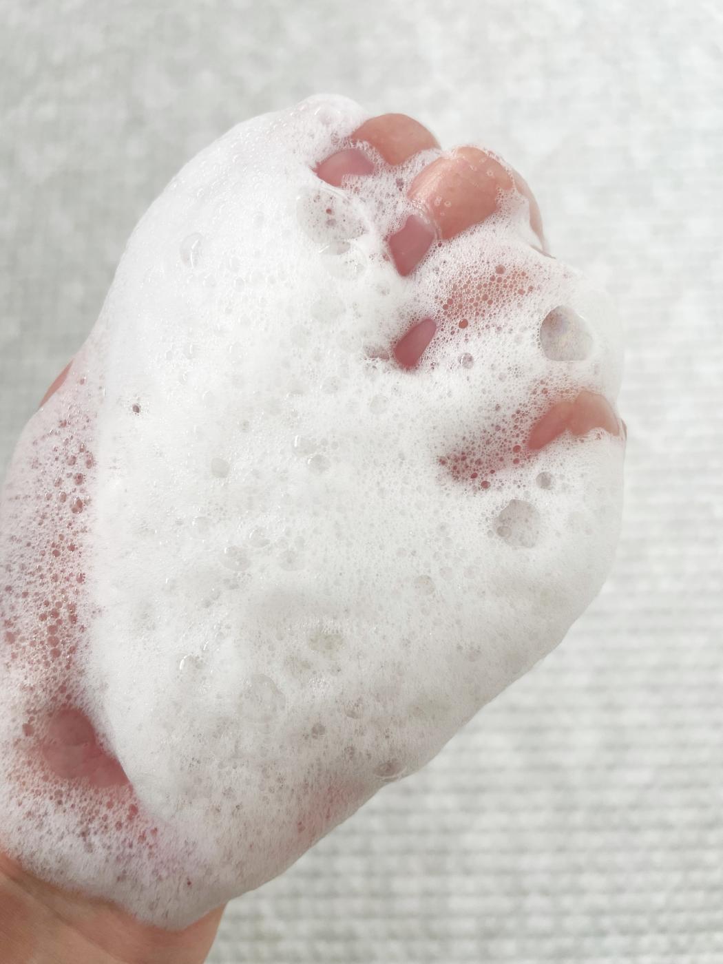 泡立ちはとても良く、少しもっちりとして、お肌に吸い付くような泡ができます。