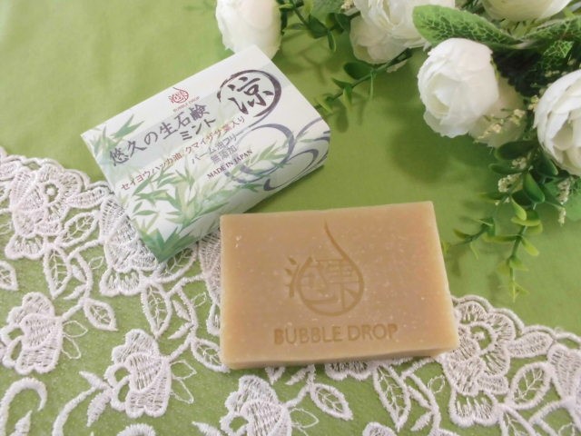 天然のミントのオイルが配合されていて、爽やかで清涼感のある良い香りがします。パームオイルが不使用で、合成界面活性剤や石油系の添加物などお肌の負担になりそうな成分が入っていないところに安心感があると思いました!