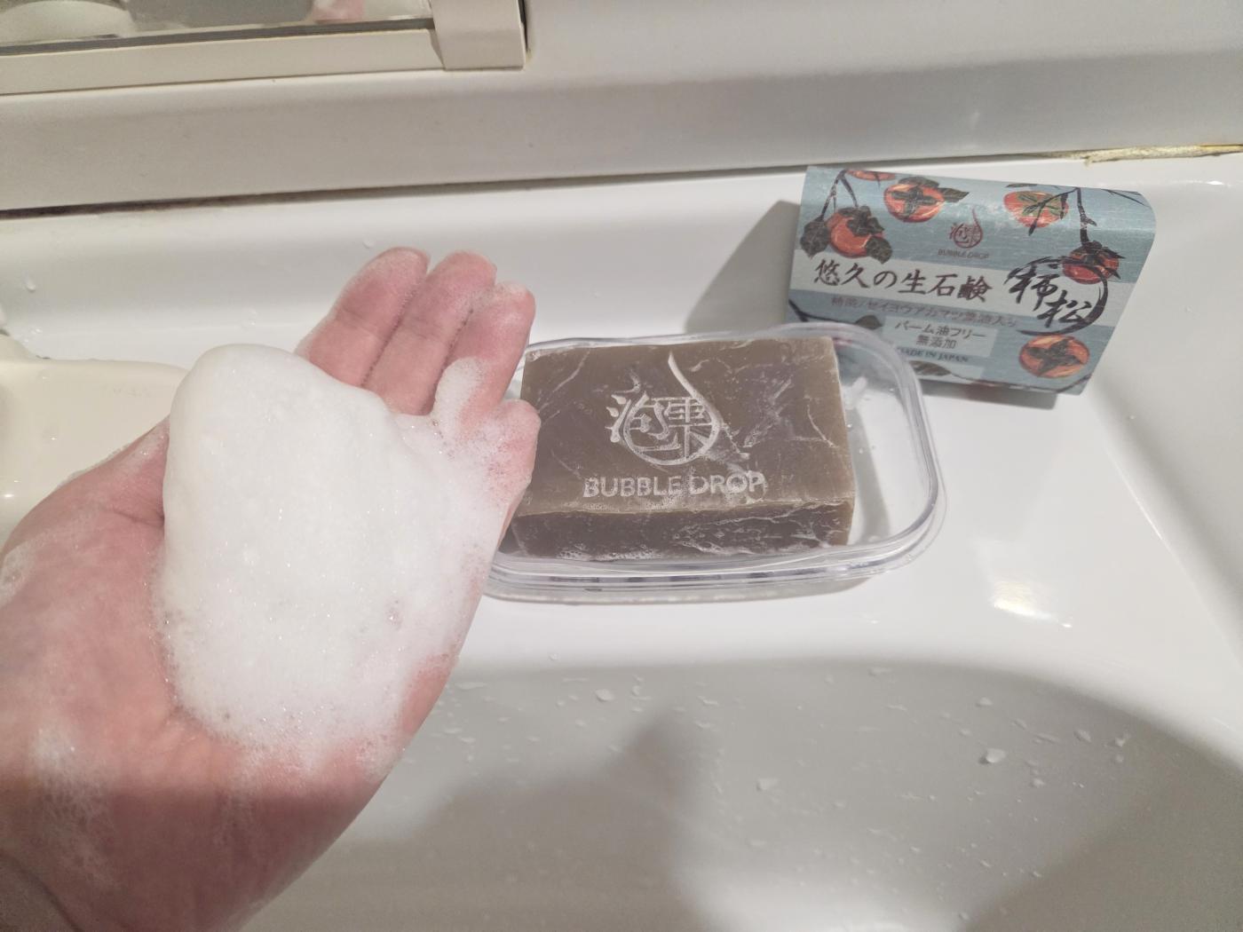 石鹸の表面に書かれている泡雫というロゴが格好良いです。