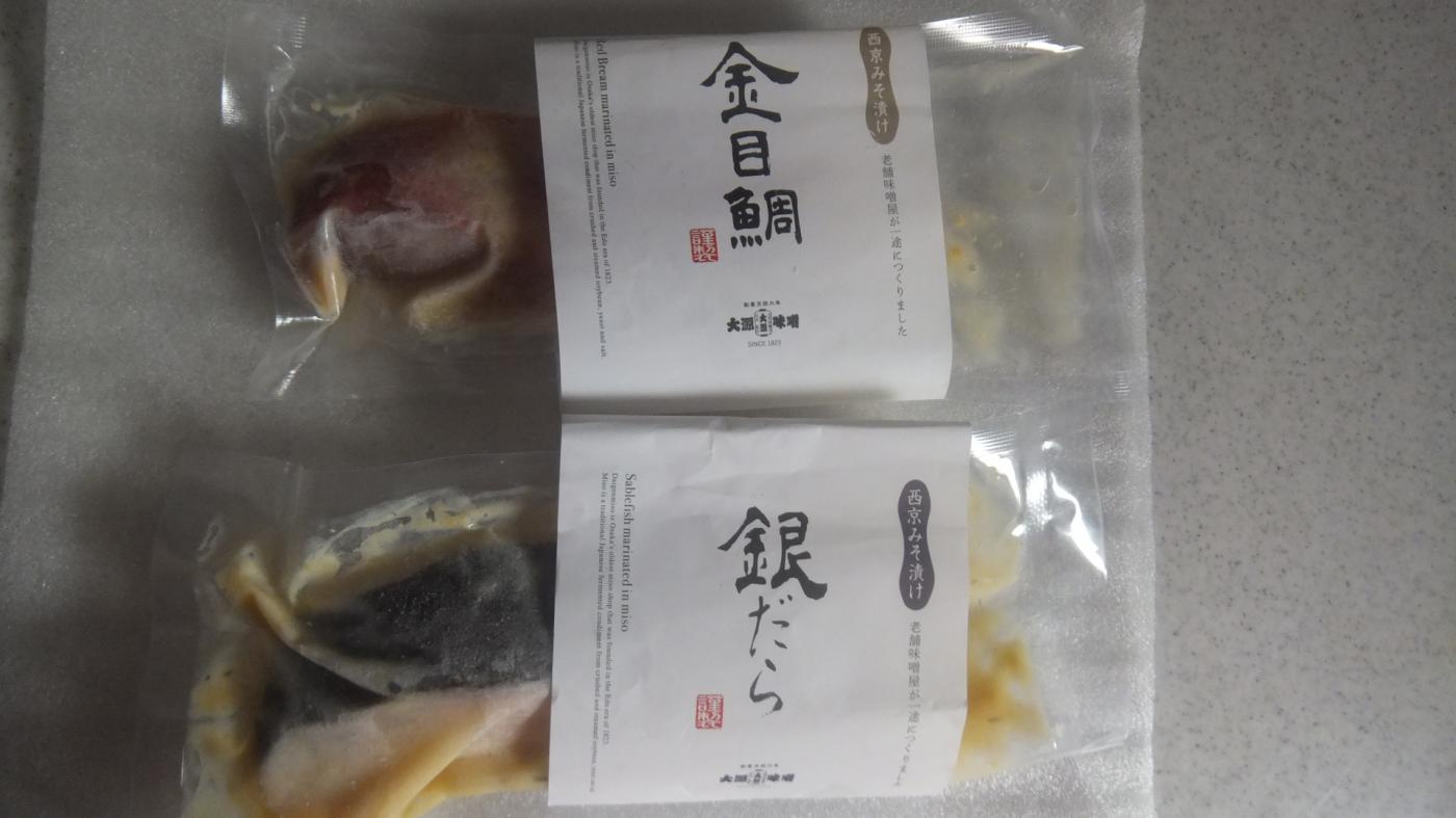 みそ漬けのお魚といえば銀だらしか思いつかない私。食べたことがあるのも銀だらだけでした。でも、この西京みそ漬けの銀だらはめちゃ、おいしかったです。ふんわりとした食感があり、銀だらの脂のりがしっかりと感じられました。みその味わいも銀だらから伝わってきました。それから金目鯛のみそ漬けもめちゃおいしかったです。金目鯛のみそ漬けは初めて食べましたが金目鯛の甘味を感じられ、美味しかったです。みそ漬けにしたことで金目鯛の甘さを挽き立たせていたようにも思いました。銀だらも金目鯛もふんわりとした食感があって、焼いただけで塩加減の良いおいしさでした。それから一切れが大きくて食べ応えがありました。焼いても身が縮むこともなかったです。周りについていたみそをなめてみましたが美味しくて、取り除いたあとみそ汁などに使いたいくらいでした。