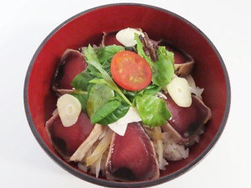 一本釣りトロカツオを船上で急速冷凍(-50度)することで、美味しい鮮度そのままに、土佐の伝統技術の高温(数百度)の藁焼きで閉じ込めた至極一品!