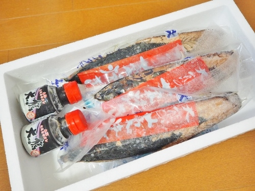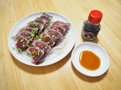 藁焼き鰹のタタキ3節とタタキのタレ2本が入っています。