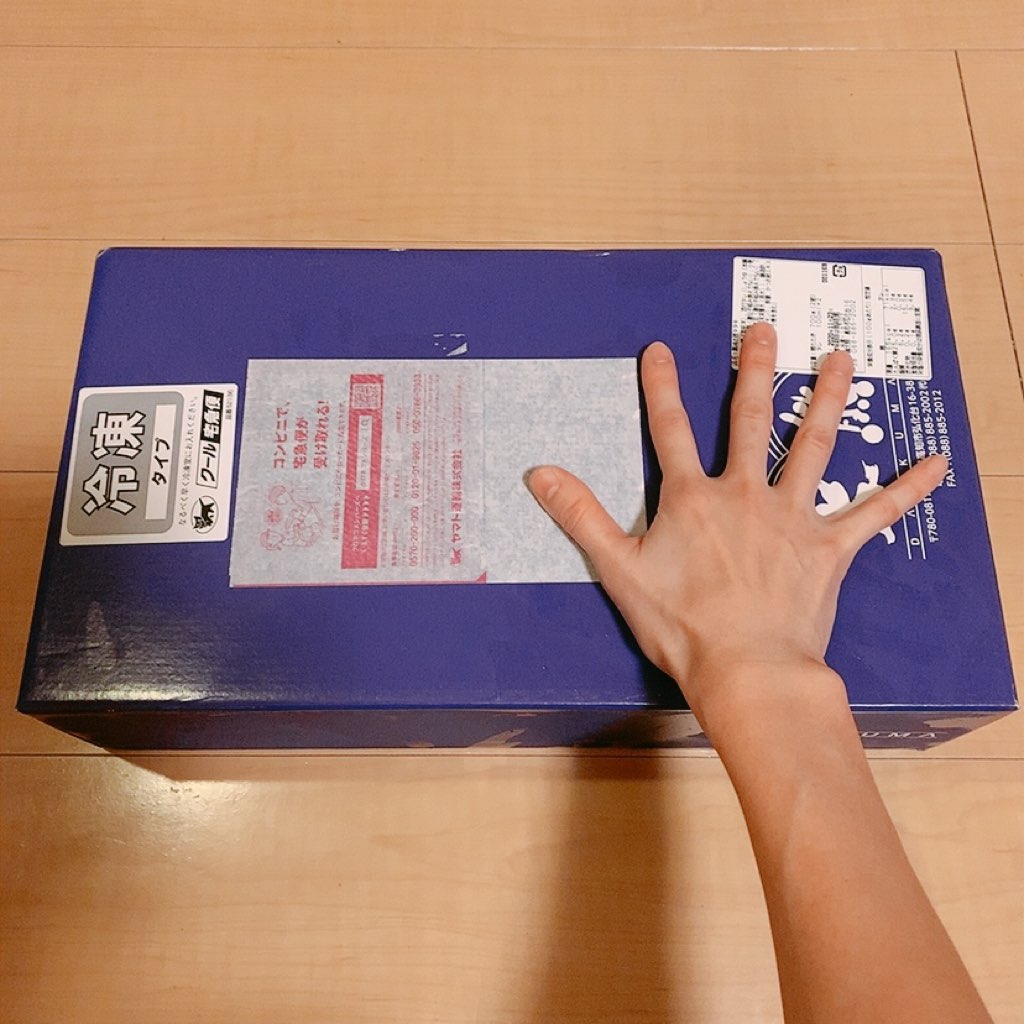 冷凍便で届き、配達員の方から受け取った時、箱が立派でめっちゃ迫力ありました。