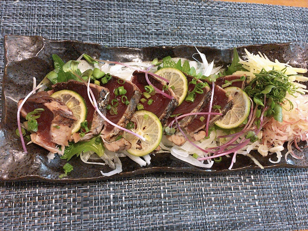 カツオはと言うと、身がしまっていて弾力がありつつ、脂があるのでねっとりとろっと!藁焼きの香ばしさも感じられ、とても美味しい。