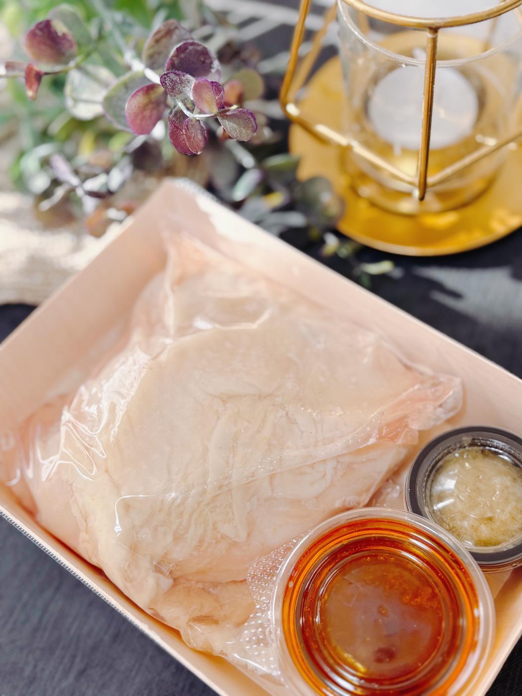 まず見た目からして、いわゆる鶏むね肉のイメージと違って、しっとり感が伝わってくる感じでした。食べ...