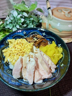 鶏飯も、甘辛く似た椎茸と、しっとりと柔らかい鶏肉とが合わさり、