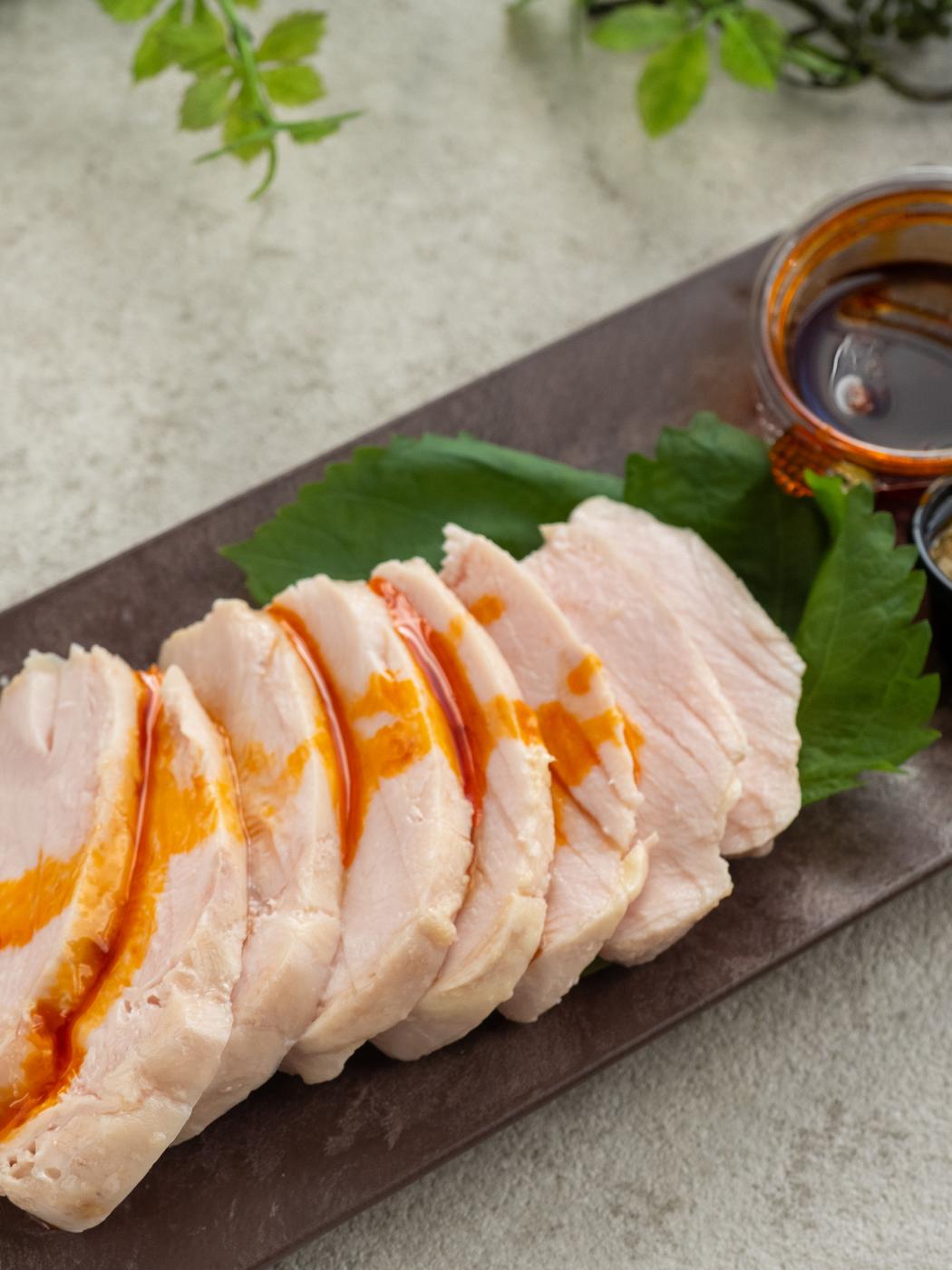 このしっとりした鶏肉、私も鶏むね肉のしっとり感が好きでよく低温調理して作ってたけど