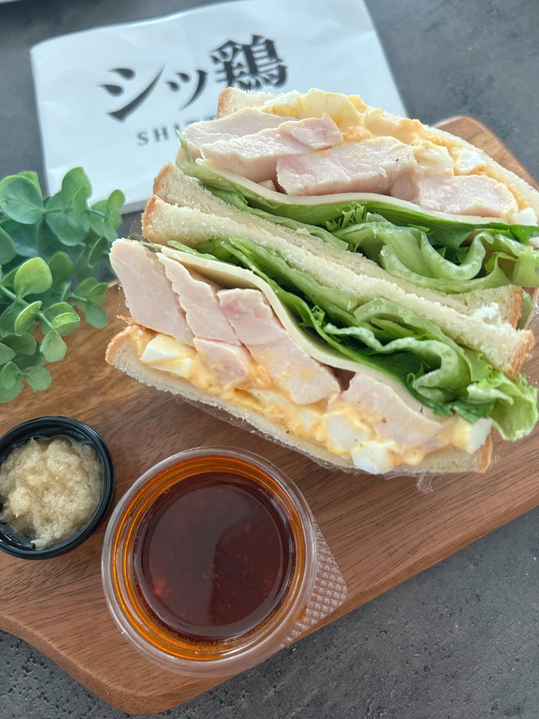 シッ鶏を分厚めにカットして挟んだのですが、驚くほど柔らかくてびっくり!