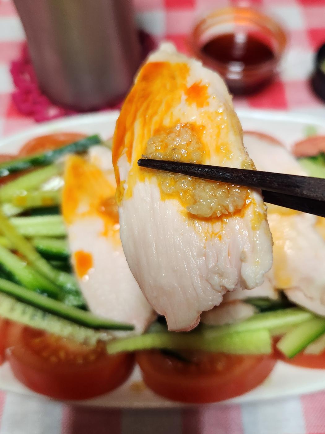 しっとり食感の蒸した鶏胸肉🐓