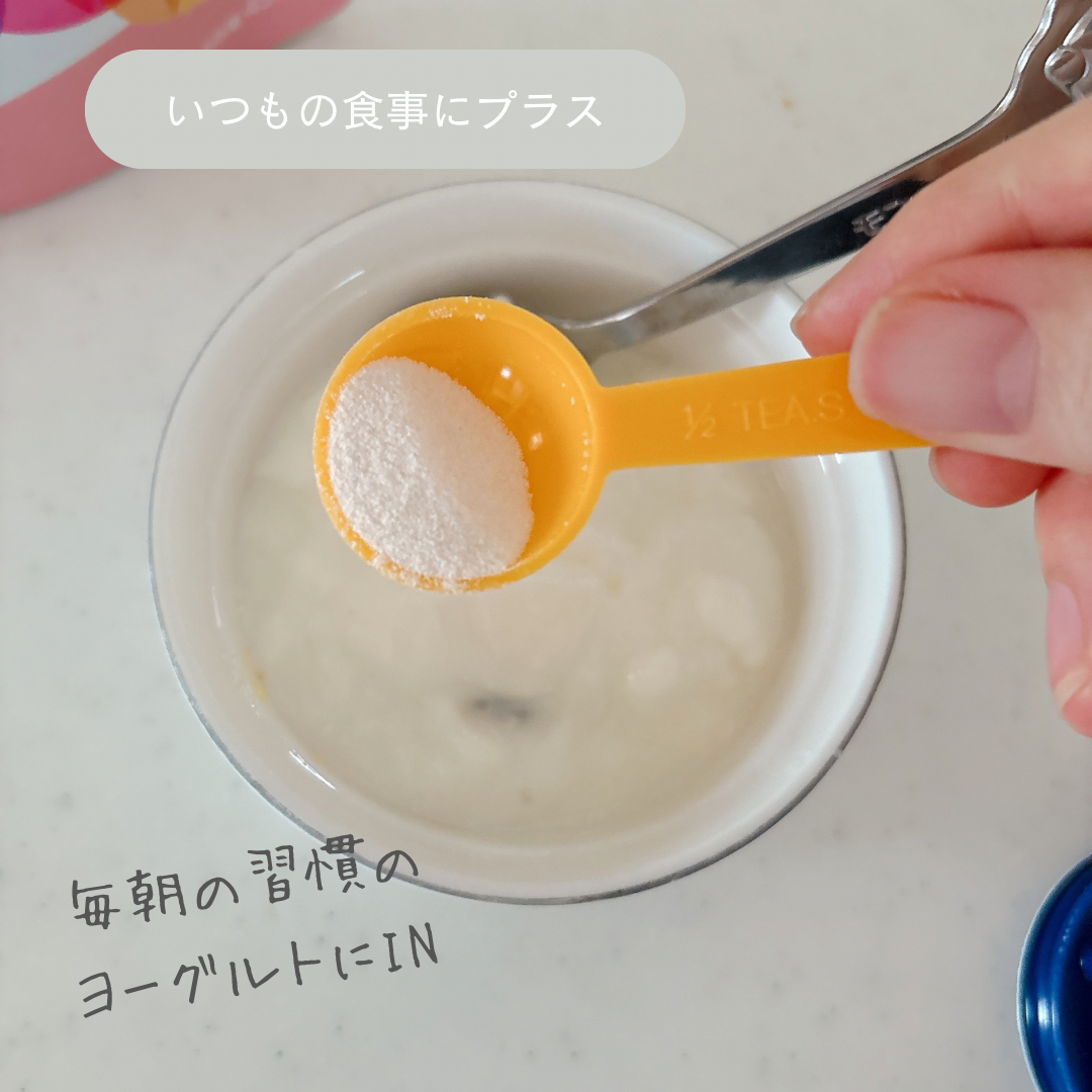 私は毎朝のコーヒーや夜のお茶に、子どもにはヨーグルトに混ぜて使っています。飲み物や食べ物の味がほとんど変わらないので、普段の食事にスムーズに取り入れられます。