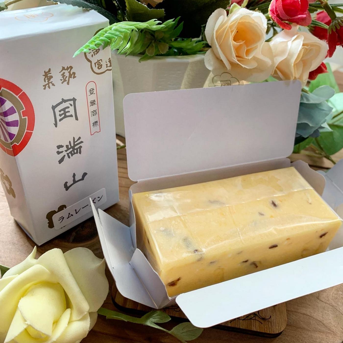 こちらはラム酒とレーズンの芳醇な香りと宝満山の甘味とまろやかさがぴったりと調和した、ラムの風味と濃厚で滑らかな卵の美味しさが絶妙な大人の和菓子。