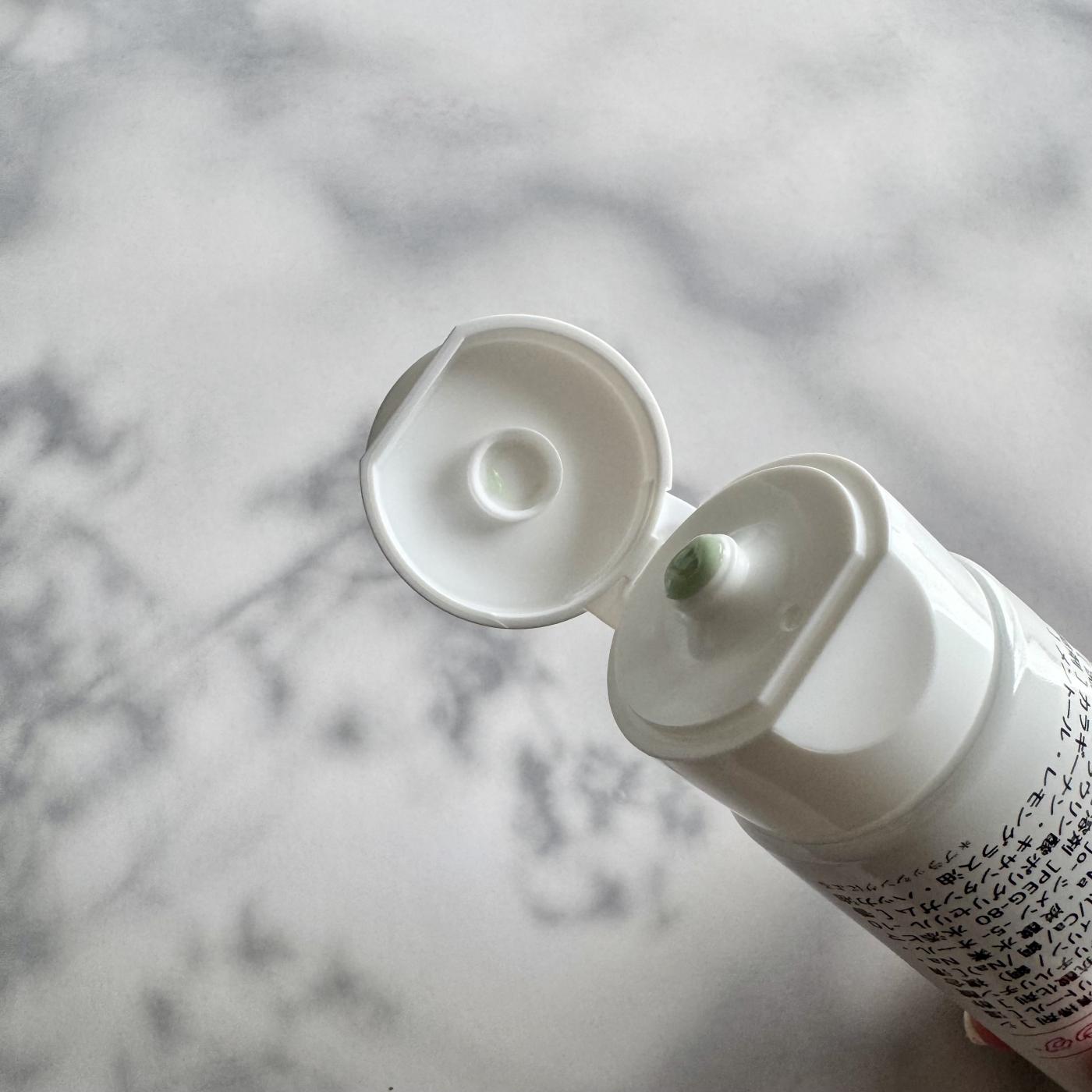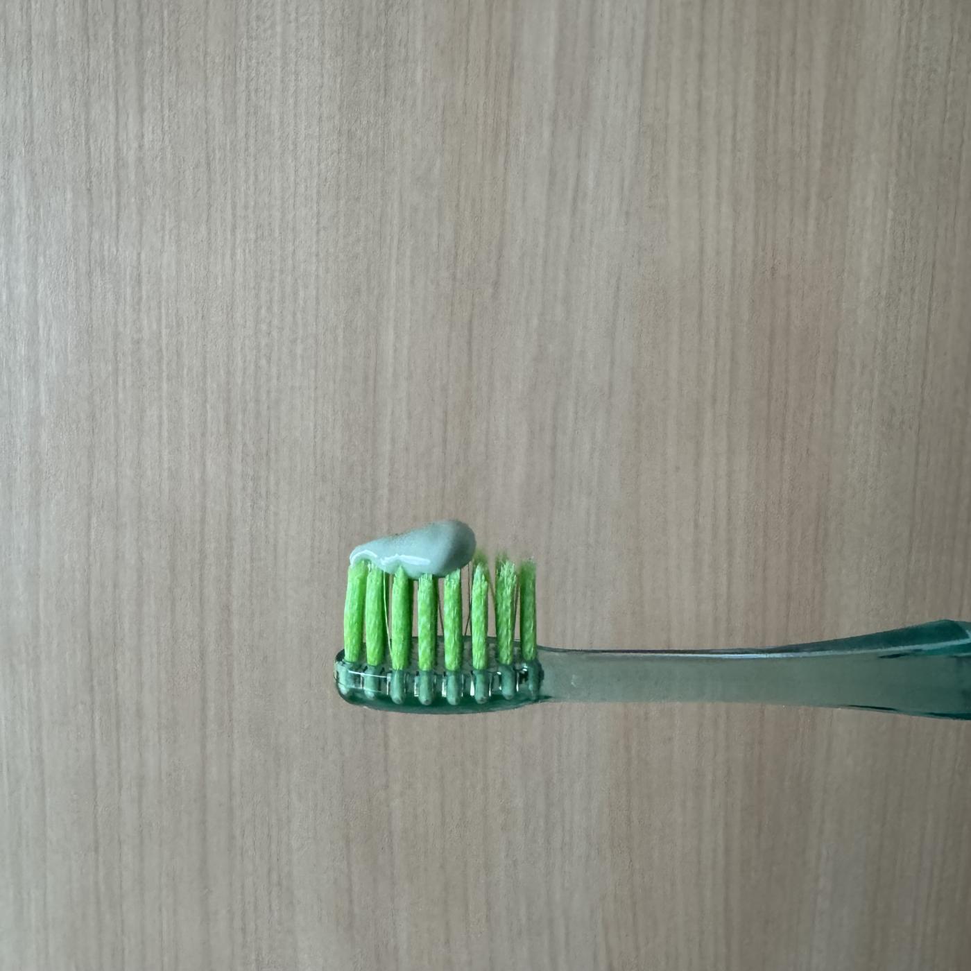 少し粘りのあるテクスチャーでパステルグリーンの歯磨き粉で泡立ちが控えめで磨きやすいです🙆♀️✨