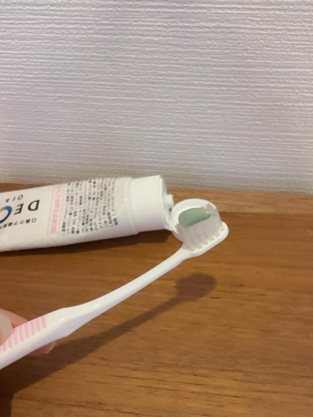 歯磨き粉は緑色と変わったカラーで、泡立ちは少なめ。