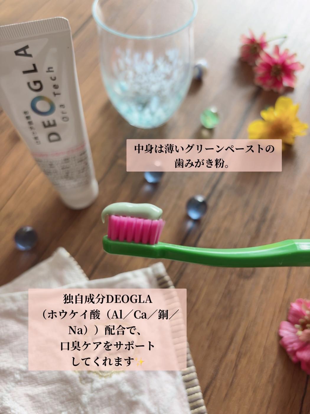 独自成分DEOGLA(ホウケイ酸(Al/Ca/銅/Na))配合で、口臭ケアをサポートしてくれます✨