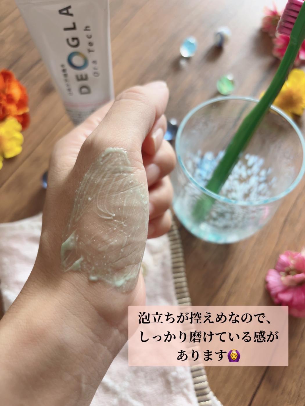 泡立ちが控えめなので、しっかり磨けている感があり、今まで舌で歯をなぞるとザラついていた部分も、磨いた後はツルツルに感じました🪥