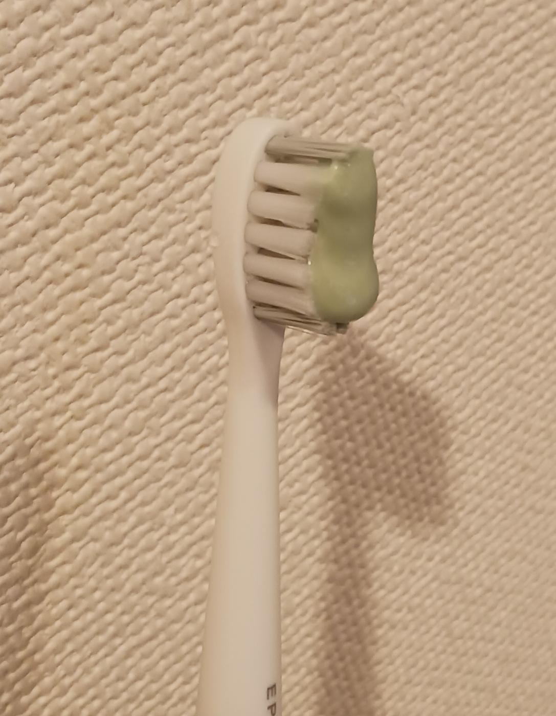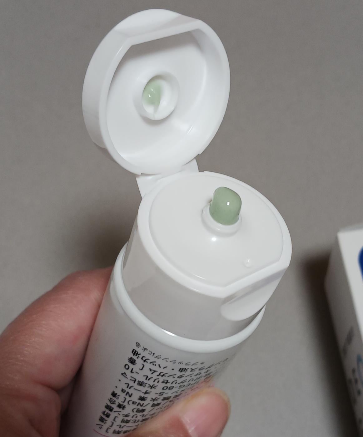 緑色の歯磨き粉、たれることはないけどやや柔らか目の印象です。
