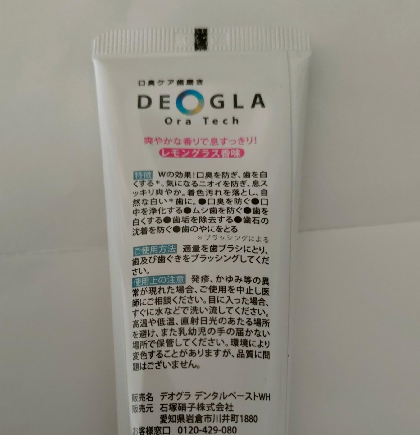 デオグラオーラテック+ホワイトニングは、口臭を防ぎ、歯を白くする(ブラッシングによる)2つの効果が期待できる歯磨き粉なんだそうです!
