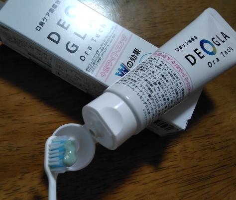 歯ブラシにつけて磨いてみると…苦いw 少しじゃりじゃりした感じがします。これがDEOGLAなのかもしれません✨