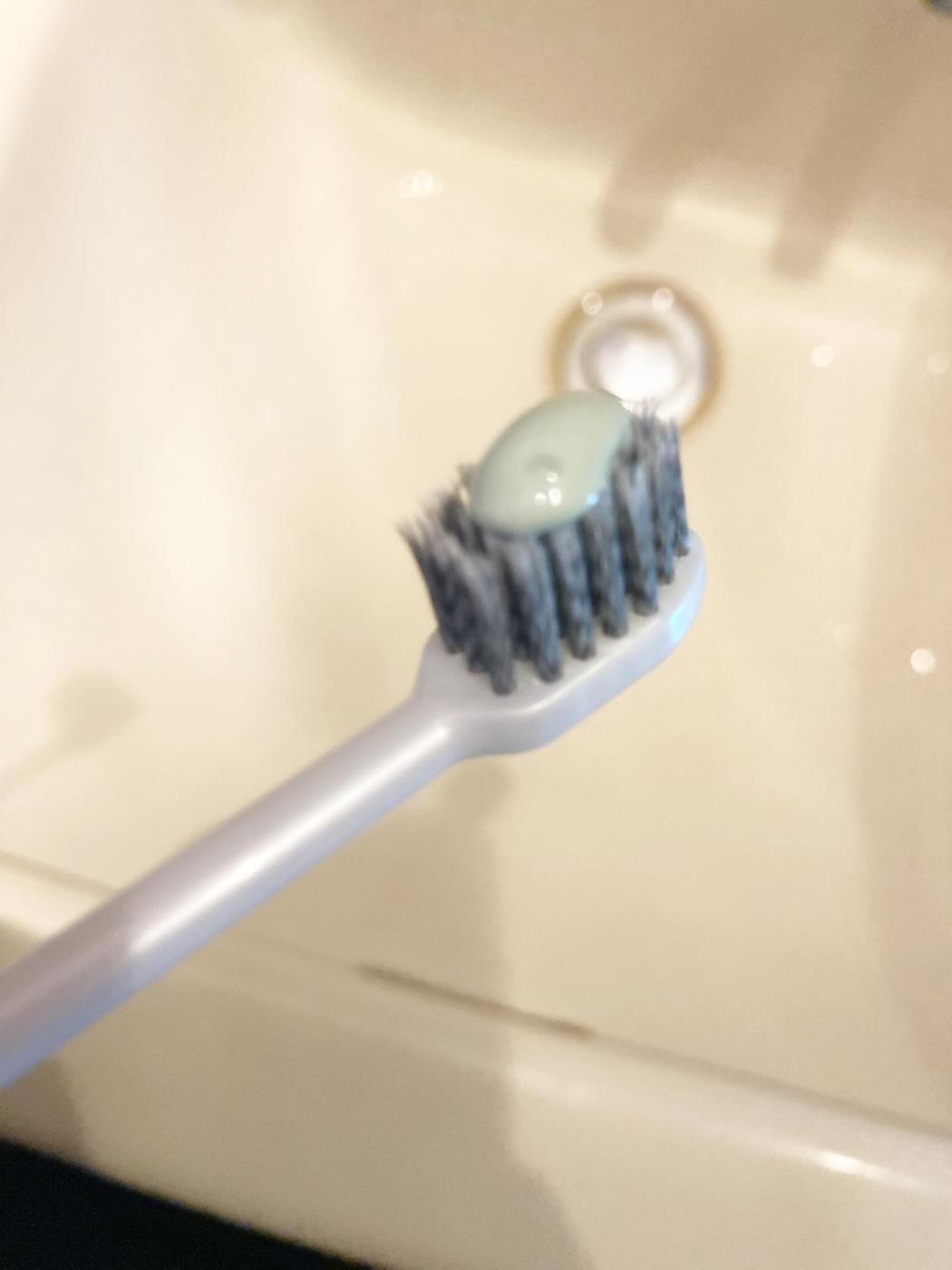 ペーストは適度な粘り気があり、歯にしっかり密着して磨きやすいです。泡立ちが強すぎないため、周りに飛び散ることなく一本一本丁寧にブラッシングできました🪥