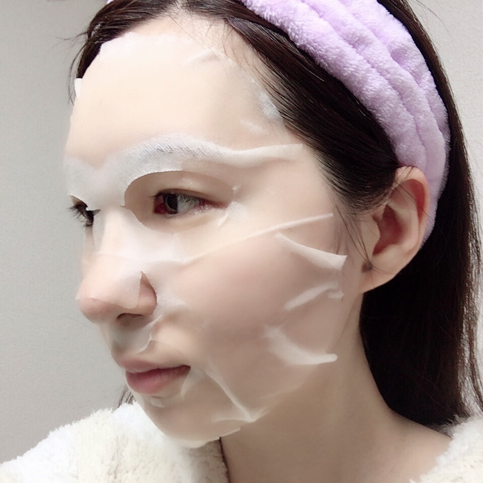 フェイスマスクのシートは結構薄めですが、美容液がたっぷり含まれているのでしっかりと肌に密着します。
