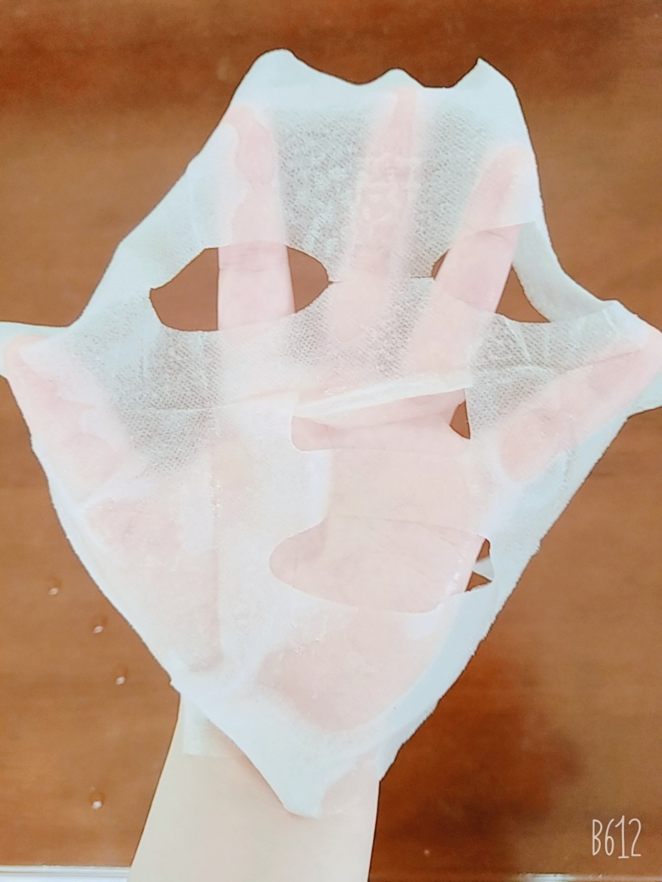 フェイスマスクを貼って、剥がして、美容液を乾かします。そうすると、美容液が乾いてパリパリになるんです!顔を動かすのが難しいぐらいパリパリになります!