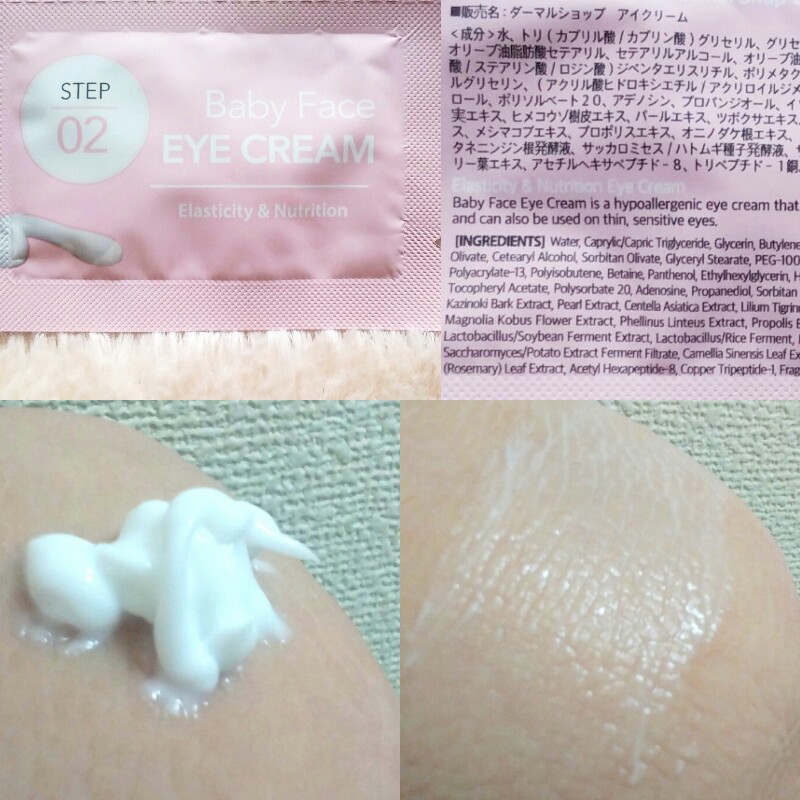 洗い流したあと、付属のアイクリームを塗っていきます。洗い流したあとは、肌がツルツルになっててビックリ。クリームは、たっぷりの量なので顔全体にしっかり使えます。