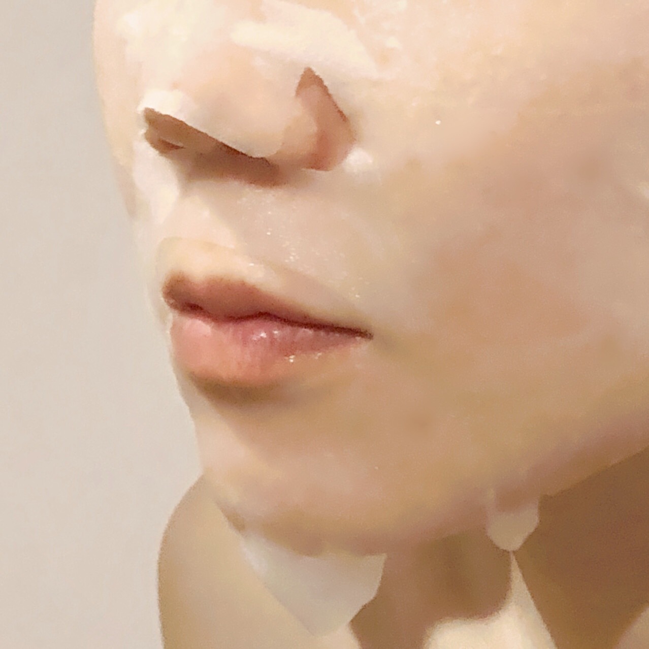 濃いめの美容液が肌へとぐんぐん浸透されます。薄めにもかかわらずしっかりとしたシートが肌に密着します。潤いを感じつつ…ワクワクしながら待つこと