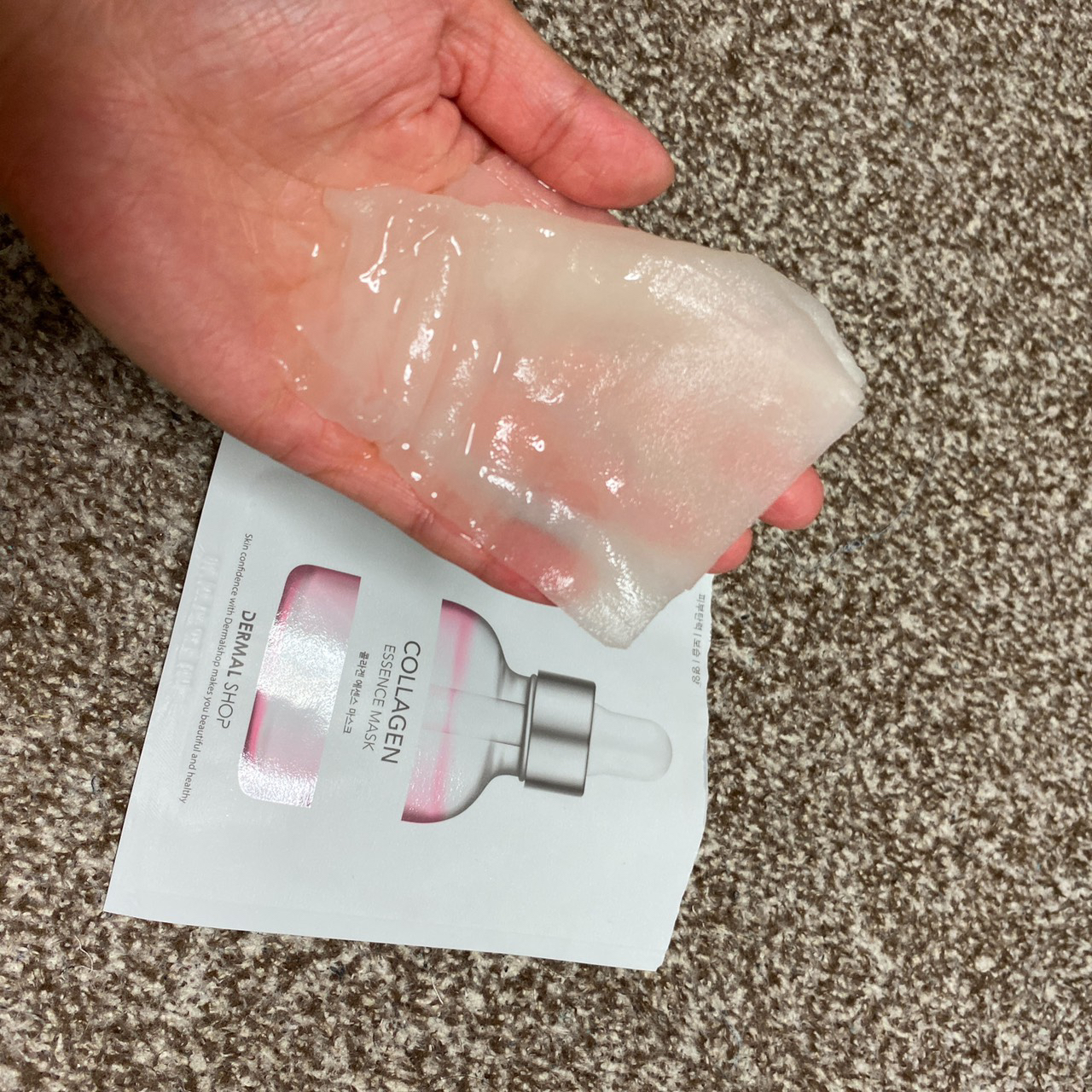 シートを手に乗せているというより、コラーゲンを手に乗せているっていう感じです。