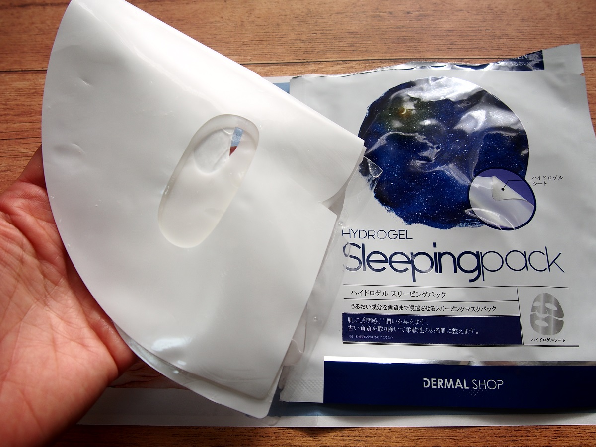 ダーマルショップのハイドロゲル スリーピングパックを頂いてお試しさせていただきました。白と青のさわやかなパッケージが素敵です。