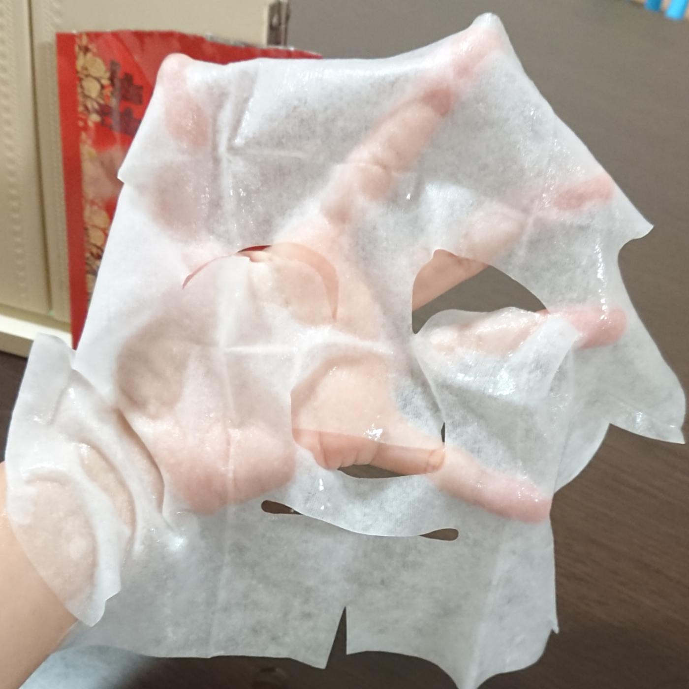 袋を開けて中を覗くと、マスクがたっぷりの美容液に浸っているのが分かります。マスクは日本製天然コットン100%ということで、厚みがあり、肌触りも柔らかくて気持ちいいです。