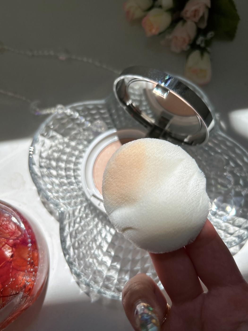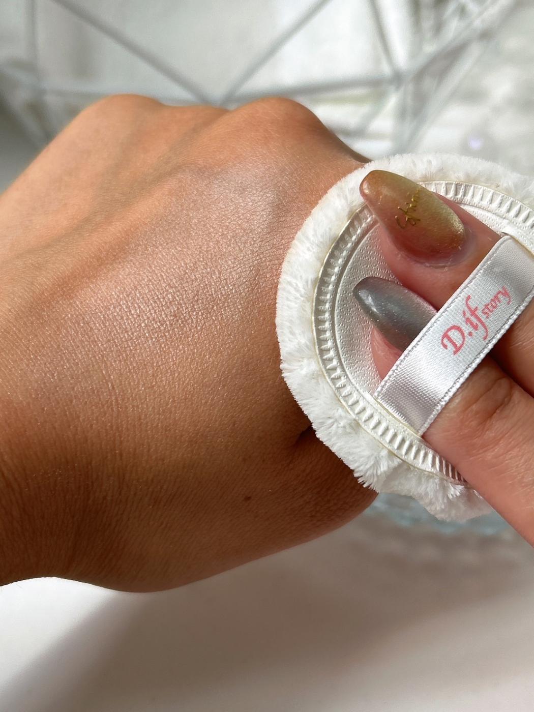 付属のパフに取って肌に塗ってみると、自然なツヤ感が出るのが嬉しい👀✨