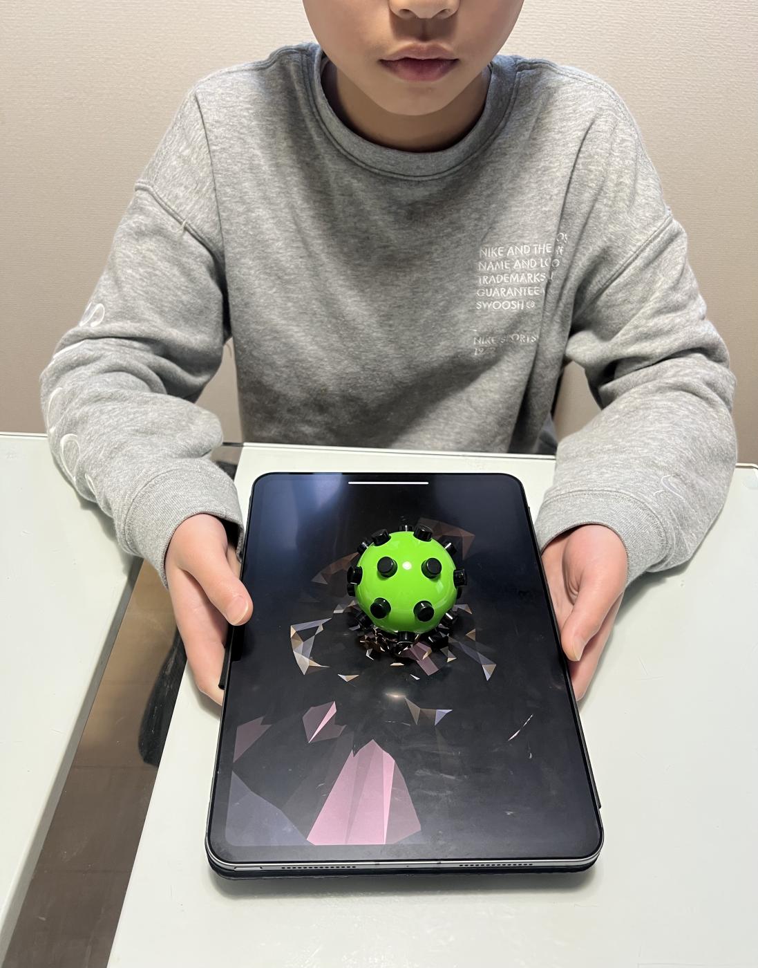 握って転がすことと、iPadを両手で持って画面の上で転がしてバランスを取ることの2通りの遊び方があります。