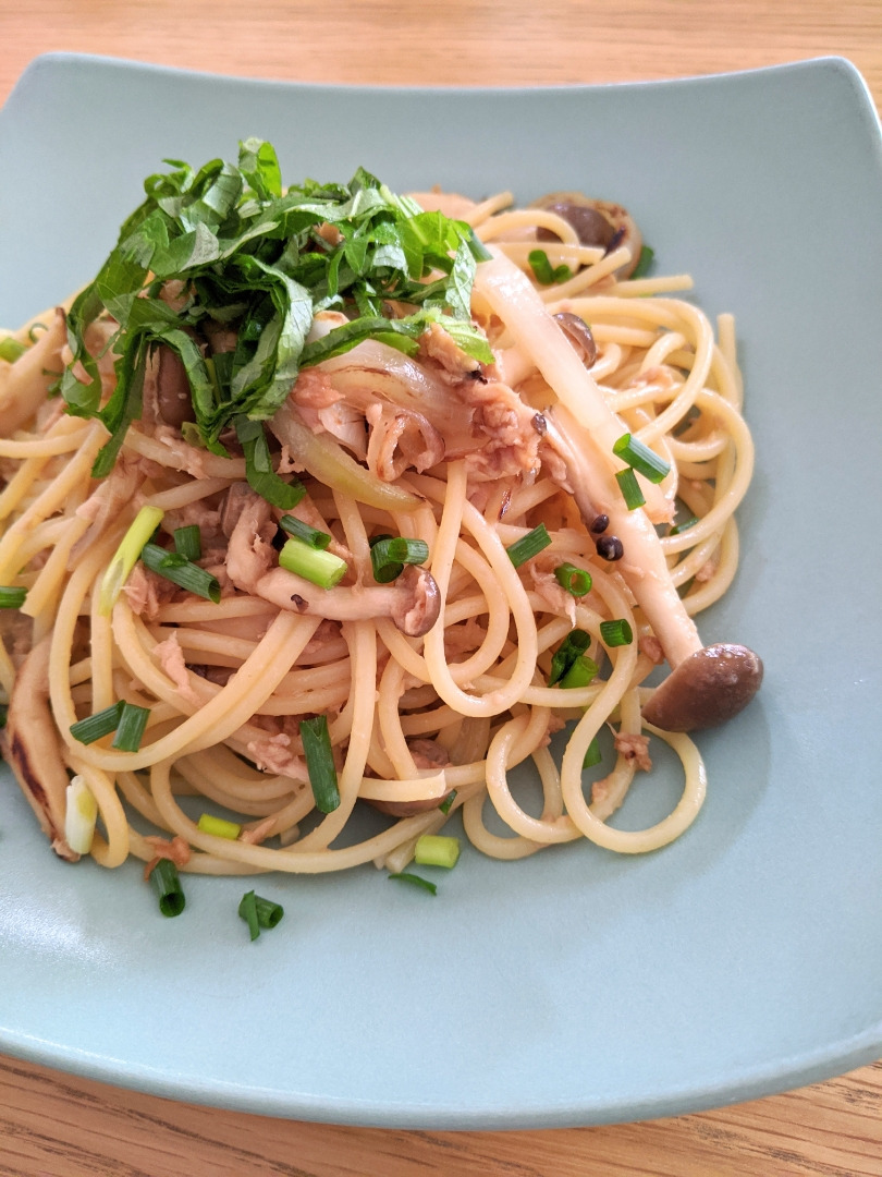 ネギと大葉を散らしたらほんのりココナッツの香りの和風パスタになりました。