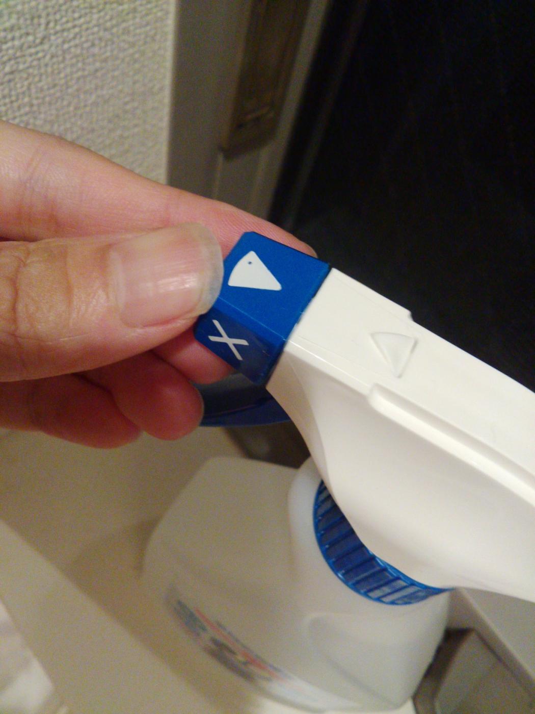スプレータイプのボトルです。噴出口にオン、オフサインがついていてわかりやすいです。除菌したいものに吹きかけるだけです。
