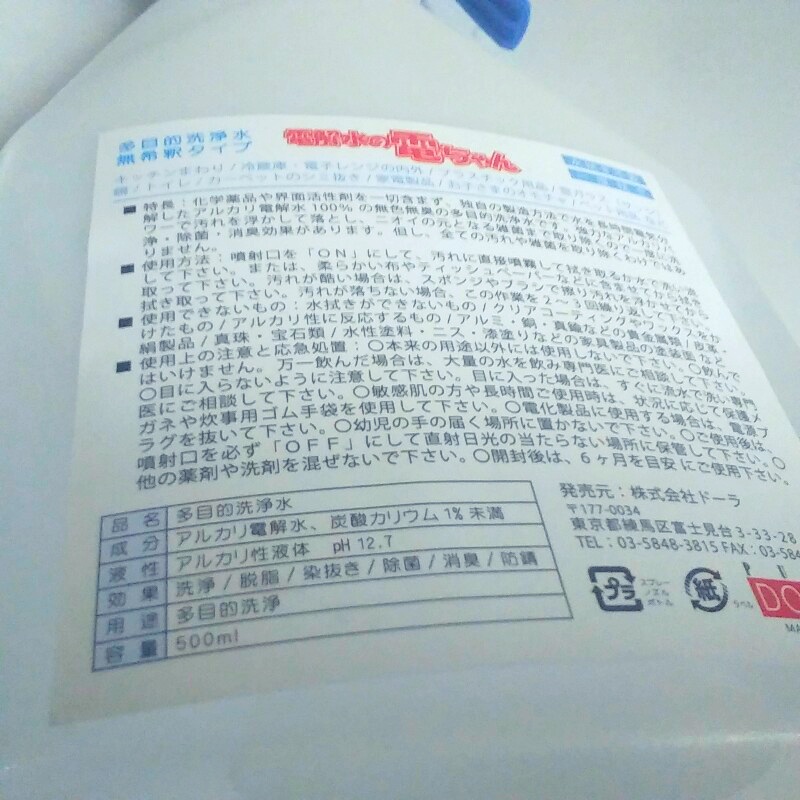 多目的洗浄水【電解水の電ちゃん】を、使ってみました。