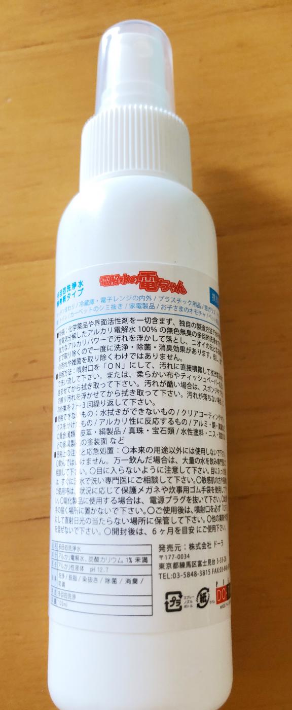 株式会社ドーラ様の「除菌・消臭スプレー 電解水の電ちゃん100ml」をお試しさせて頂きました。