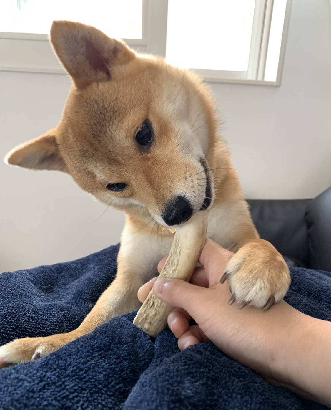 鹿の角は与えたことがなかったので気に入ってくれるか不安でしたが写真の通り大好きになりました☆