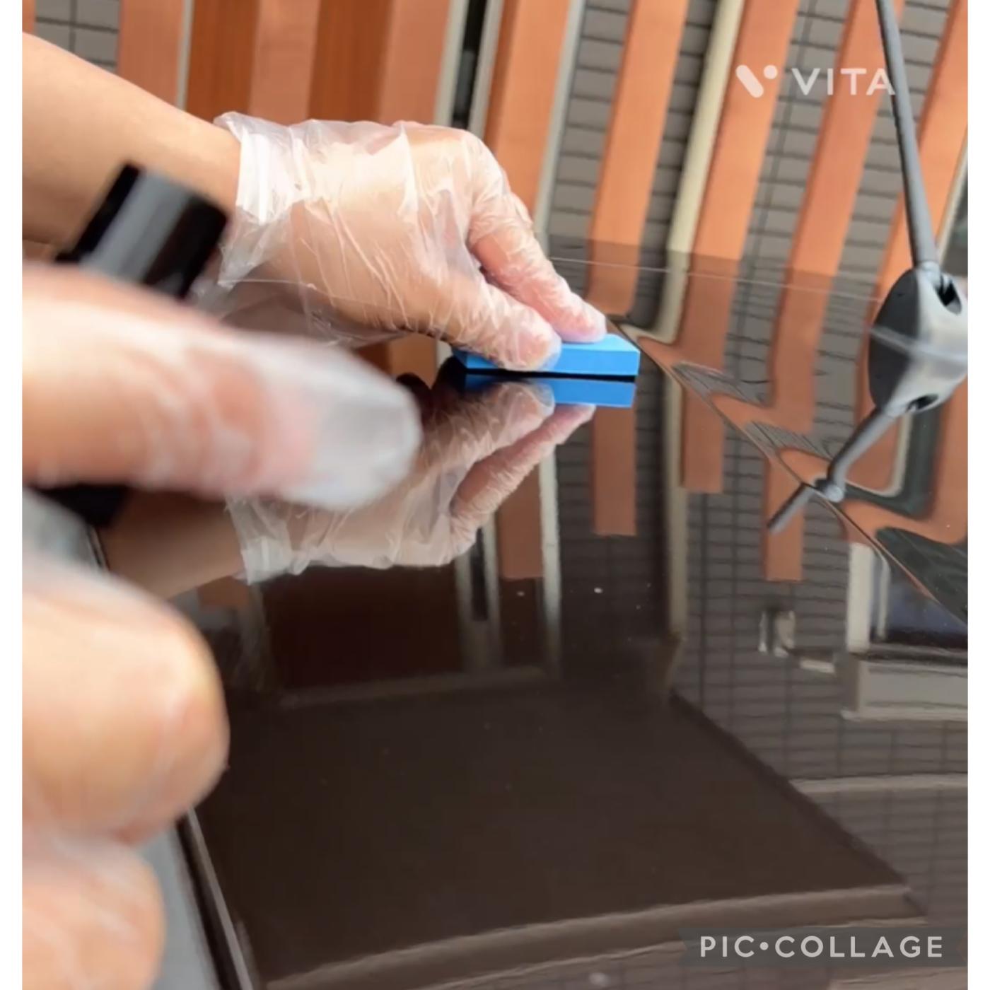 洗車した車体に専用のスポンジでクルクルと薄く伸ばしていくだけの簡単施工!