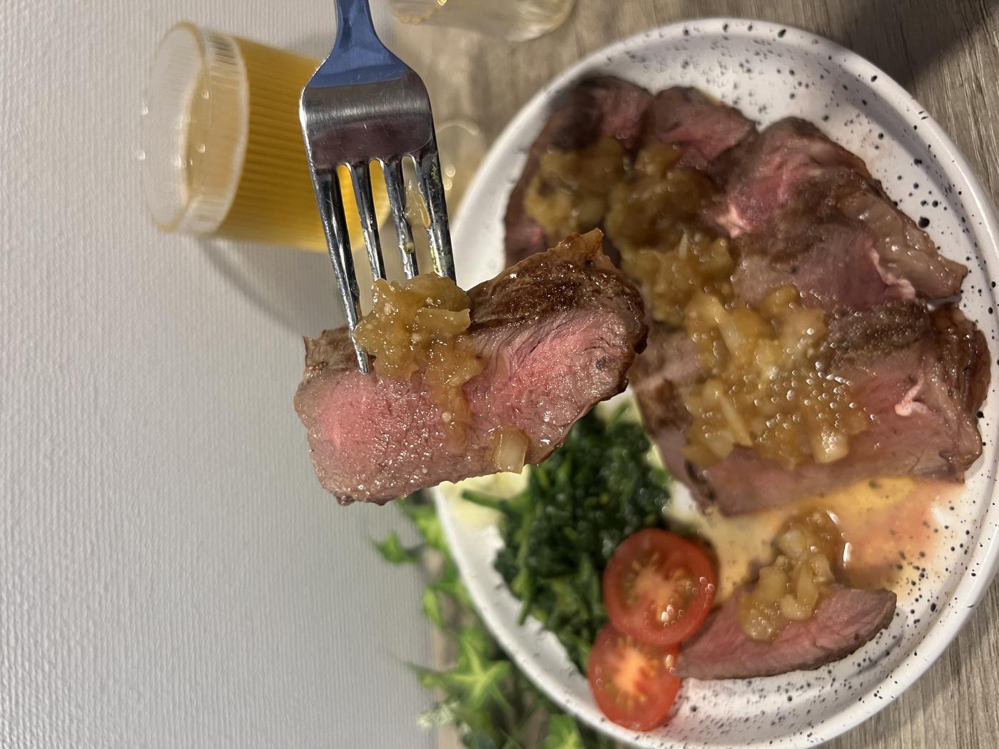 玉ねぎソースを作ってかけたけど、あっさり食べれて美味しかったよ🧅塩コショウのみでも牛本来の美味しさを楽しめておすすめ🤭✨✨