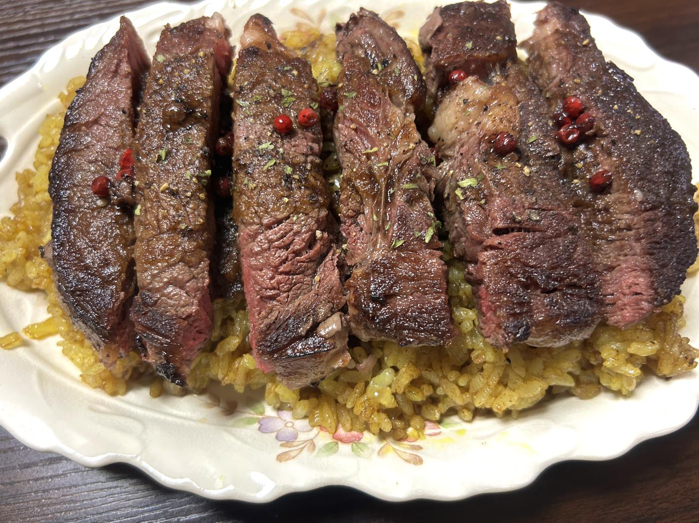 今回はレアで焼いて、ペッパーランチ風にカットして食べてみました。