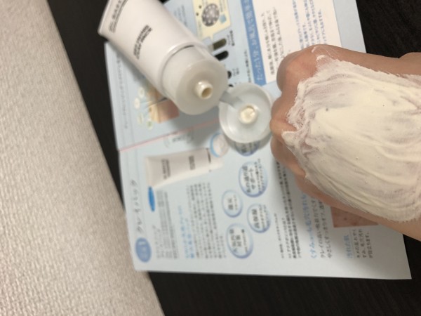洗顔後、軽く水分をふき取り、大さじ1杯強の量をお顔全体と首すじにのばします。