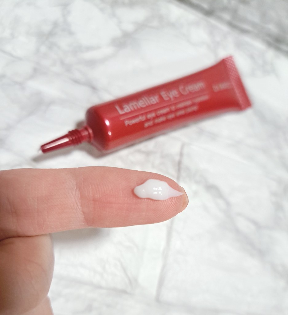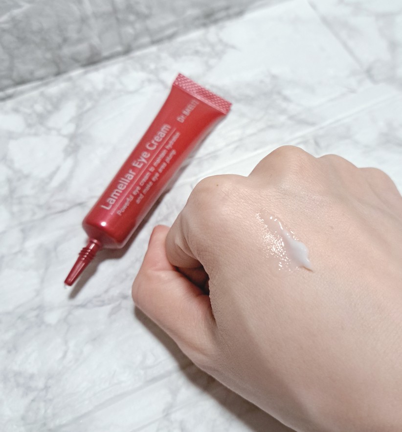 アイクリームにしてはかなり軽めでサラッとした使い心地です。すぐに浸透してべたつかないから朝のメイク前でも使いやすいです!