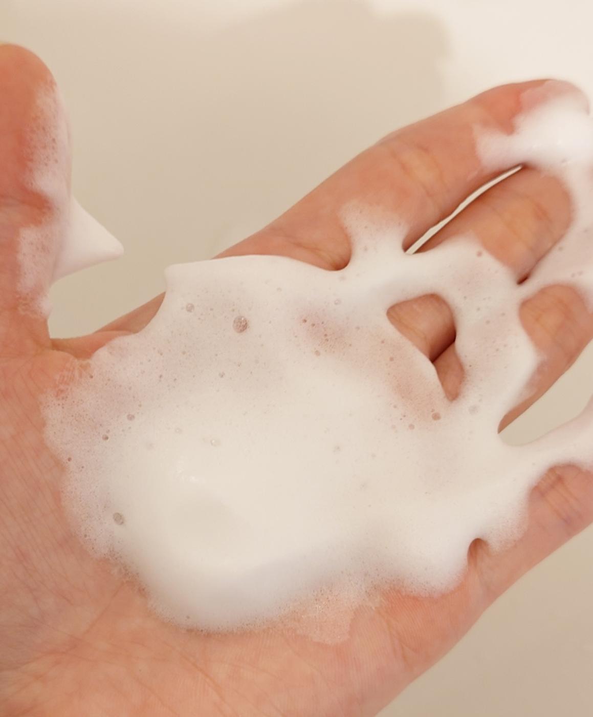 ふわふわ〜というより、かためでピタッと密着するような泡で