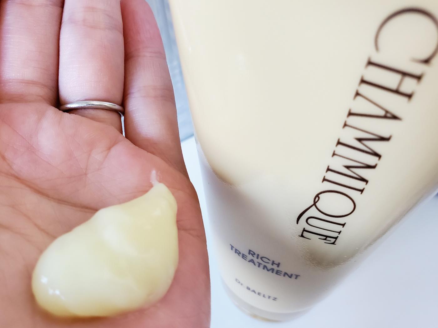 トリートメントはキューティクルケアエッセンス配合でヘアカラーやドライヤーの熱、紫外線などの気になる乾燥を防ぎ、つややかでみじみずしい状態に整えるリッチな使用感です。ゼラニウム精油使用で香りがとてもいい!ドライヤーで乾かすといつもより髪がまとまりやすくサラサラになったと思います。指通りがぜんぜん違って嬉しい。