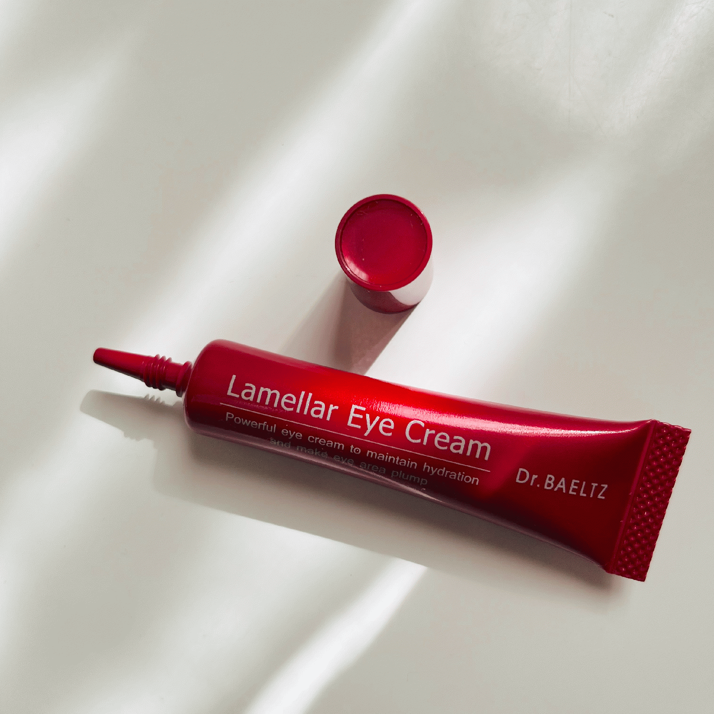 ラメラアイクリームはラメラ構造を採用したクリーム。一般の乳化のクリームと比較して配合成分の浸透が良いのだとか💡