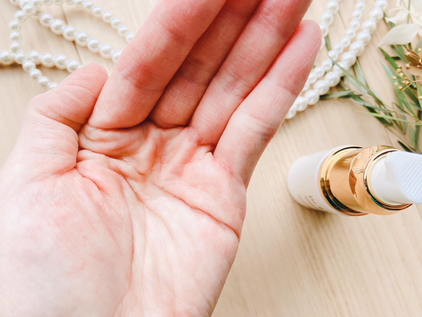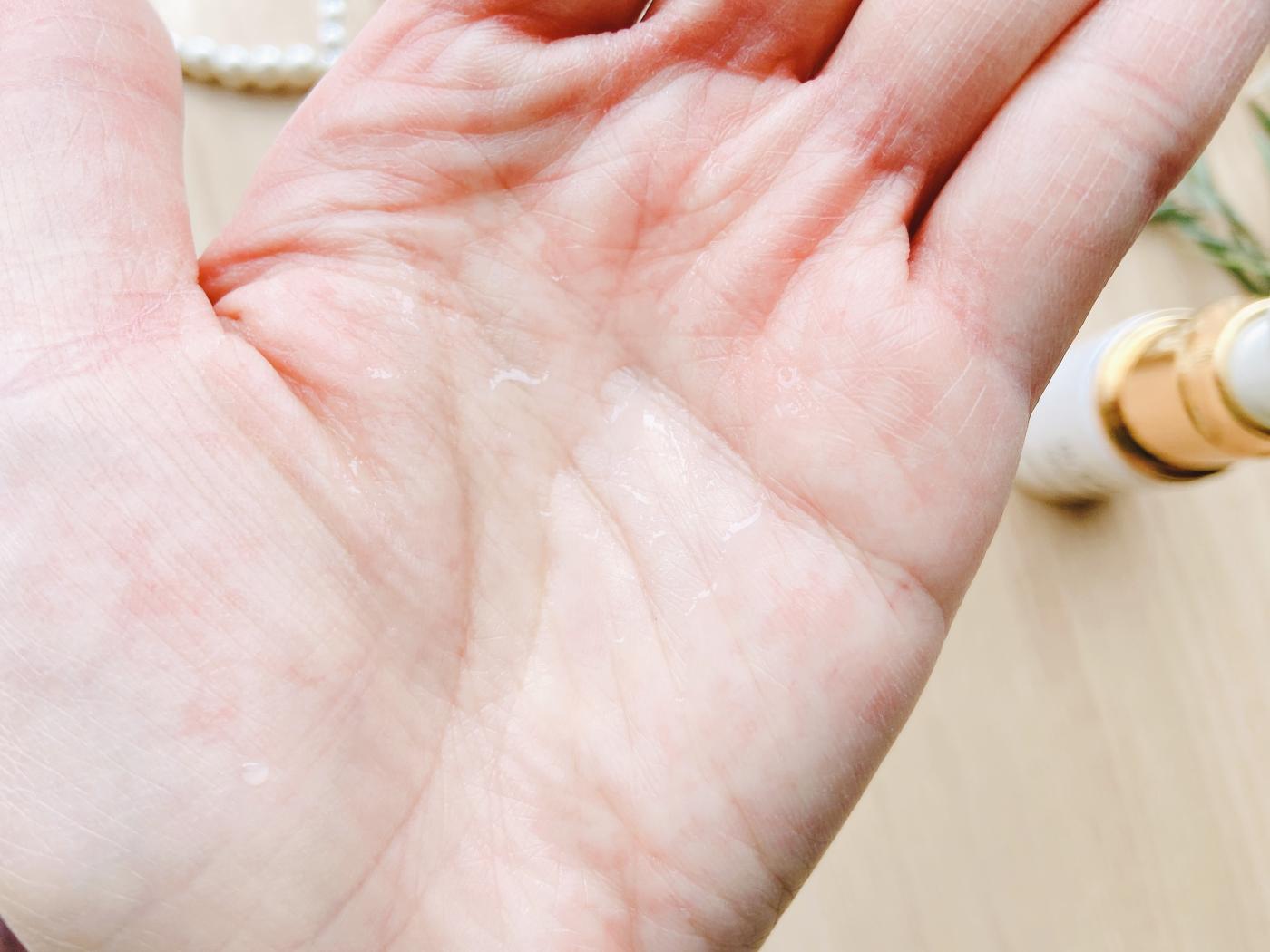 プッシュタイプで、パシャパシャした化粧水のようなテクスチャです。肌に馴染ませると心地よくて、次に使うスキンケアの馴染みが良くなるので使い心地にハマってしまいました❤️