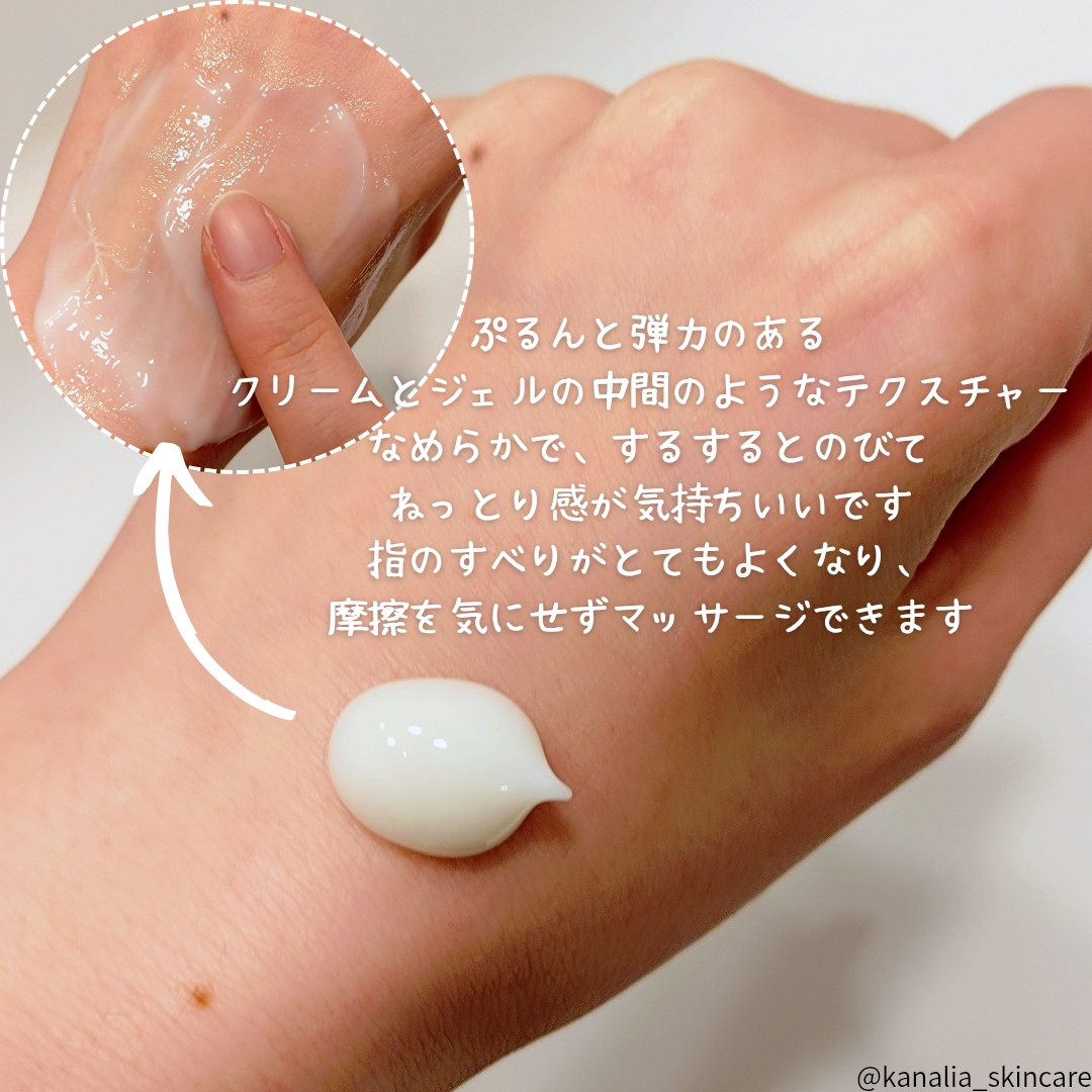 こちらのジェルは、ぷるんとした弾力のあるテクスチャーで、なめらかにのびて、肌に負担をかけずにマッサージができます💮