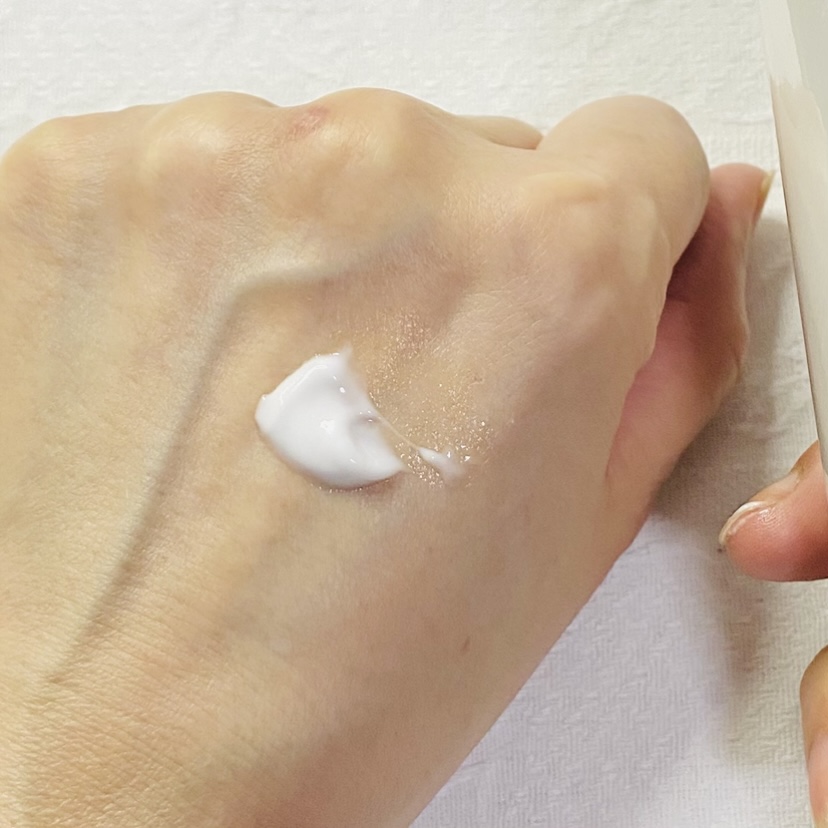テクスチャーは乳液とジェルの良いとこどりの柔らか過ぎないテクスチャーの白いジェルです。