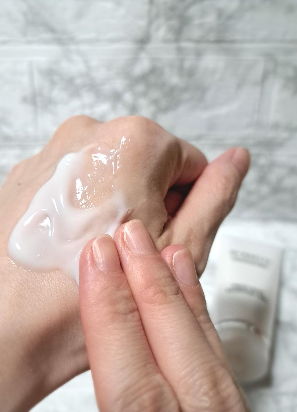 優しくマッサージしてから洗い流すと、お肌がもっちりしてハリとつやが増した感じ♪
